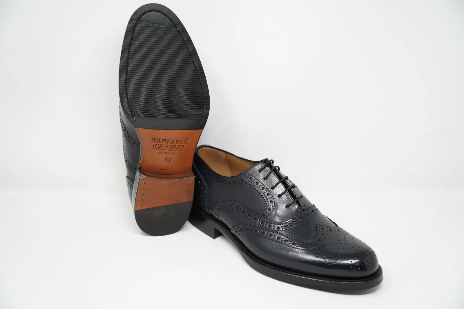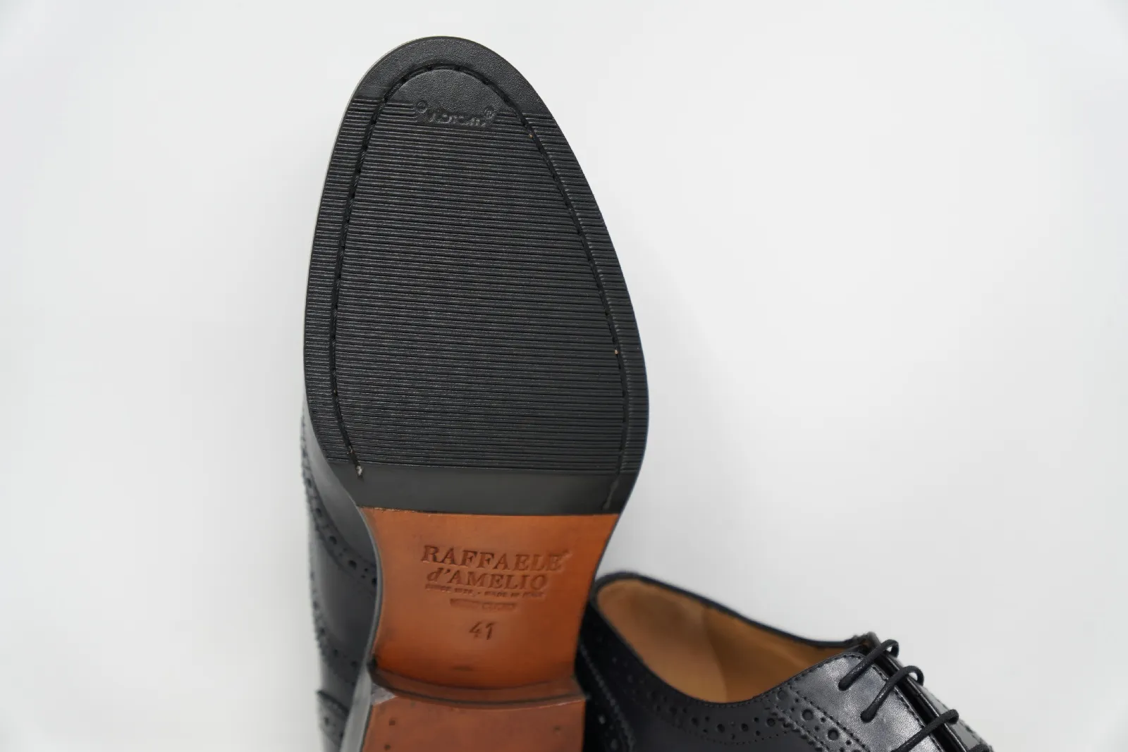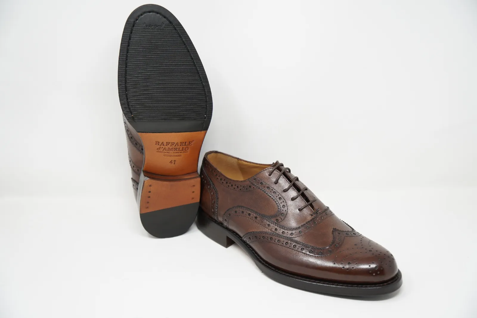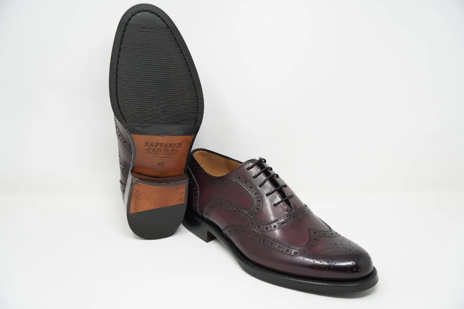 La tomaia è in pregiata pelle di vitello come la fodera mentre la suola è in vero cuoio con la mezza gomma Vibram, il tutto cucito insieme.